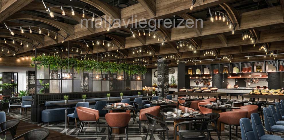 In de diverse restaurants worden Maltese specialiteiten, pizza’s, gegrilde vlees- en visgerechten geserveerd. Er is verder een loungebar en een pizzeria met de naam Tal-Kaptan.